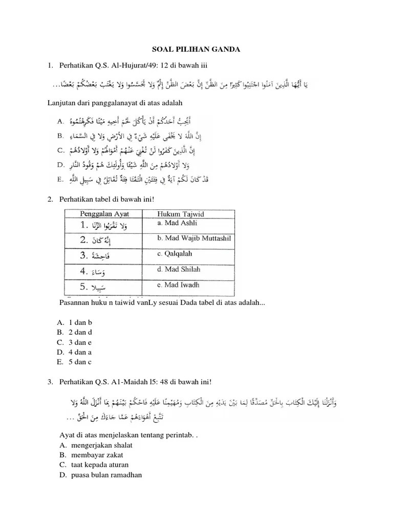 Contoh Soal Agama Tentang Tajwid Pilihan Ganda : Soal Dan Jawaban Cerdas Cermat Agama Isl / Soal materi qalqalah pilihan ganda dan essay cerdiknyacom.